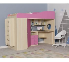 [name] => Кровать-чердак Кадет-1 с металлической лестницей Дуб молочный/Розовый
