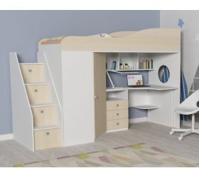 [name] => Кровать-чердак Юниор-4 Белое дерево/Оранжевый