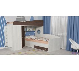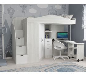 [name] => Кровать-чердак Кадет-2 угловая Дуб молочный/Белое дерево