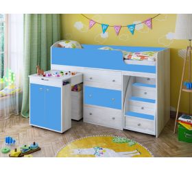 [name] => Кровать двухъярусная Юниор-1 с бортиком Белое дерево/Голубой
